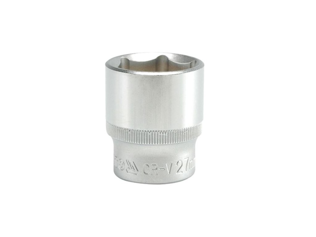 Šesťhranný nadstavec (orech) nástrčný kľúč 1/2" 27mm krátky z chróm-vanádiovej ocele. Nadstavec nástrčný kľúč je vhodný pre račne typu Yato (a inými v zodpovedajúcej kvalite).