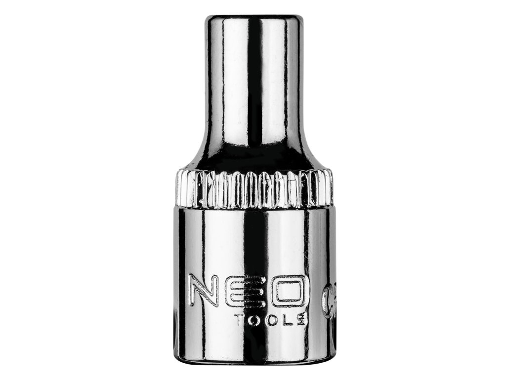 1/4" šesťhranná objímka NEO vyrobená z odolnej chróm-vanádiovej ocele. Vlnitý povrch zlepšuje priľnavosť zásuvky. Kvalitu nástroja potvrdzuje 25-ročná záruka výrobcu. Značka NEO spĺňa očakávania profesionálov.