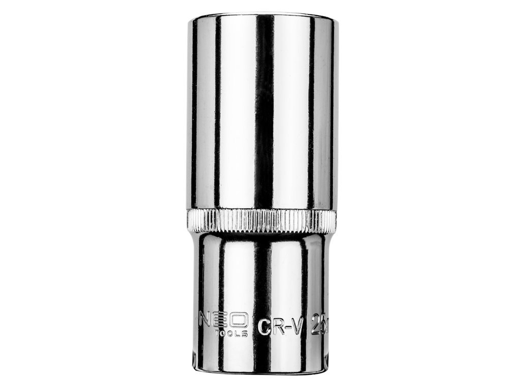 1/2" dlhá šesťhranná objímka 25 mm NEO (ref. 08-475) z odolnej chróm-vanádiovej ocele. Vlnitý povrch zlepšuje priľnavosť zásuvky. Kvalitu nástroja potvrdzuje 25-ročná záruka výrobcu. Značka NEO spĺňa očakávania profesionálov.