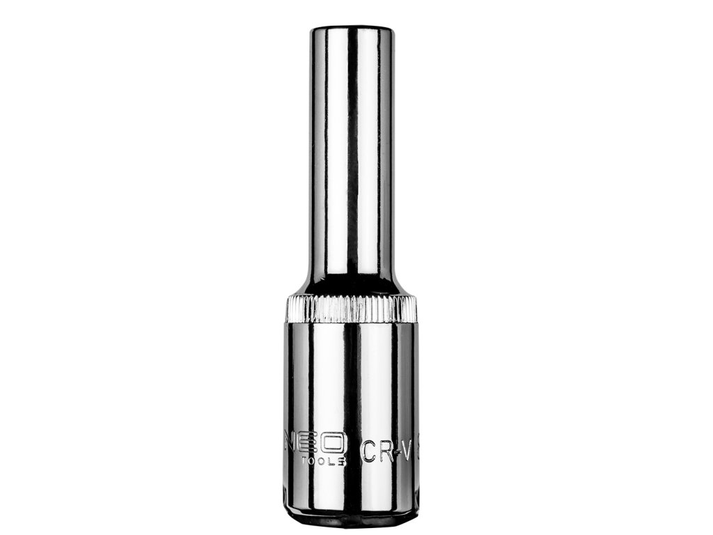 1/2" dlhá šesťhranná objímka NEO vyrobená z odolnej chróm-vanádiovej ocele. Vlnitý povrch zlepšuje priľnavosť zásuvky. Kvalitu nástroja potvrdzuje 25-ročná záruka výrobcu. Značka NEO spĺňa očakávania profesionálov.