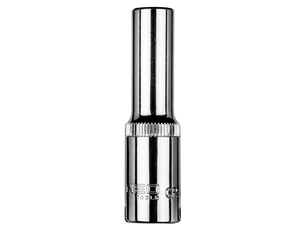 Šesťhranná objímka NEO s dĺžkou 3/8" vyrobená z odolnej chrómvanádiovej ocele. Vlnitý povrch zlepšuje priľnavosť zásuvky. Kvalitu nástroja potvrdzuje 25-ročná záruka výrobcu. Značka NEO spĺňa očakávania profesionálov.