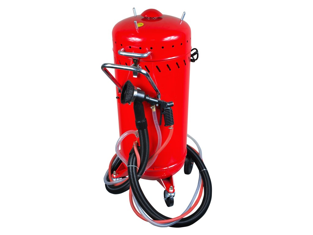Prenosná 105 litrová pieskovačka je vhodnou alternatívou pre interierové využitie vďaka integrovanému vysávaču. Zabraňuje sa tým šíreniu nežiadúcich častí vo vzduchu. Taktiež obsahuje zabudovaný filter a ten zabezpečuje opätovné použitie pieskovacieho materiálu (pieskovací materiál nie je súčasťou základného variantu balenia).