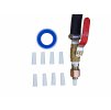 Súčasťou balenia je: ochrana tváre na pieskovanie, 4x trysky, tesniaca páska, hadica dlhá 2,5 m, návod a lievik na napĺňanie.