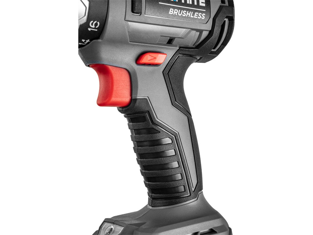Dôraz na ergonómiu a bezpečnosť stelesňuje hlavne rukoväť, ktorá je potiahnutá protišmykovým materiálom. Rukoväť umožňuje pohodlné používanie aj v náročných podmienkach. Automatická LED dióda poslúži v tmavých a ťažko dostupných miestach. S vŕtačkou sa vám bude pracovať naozaj pohodlne aj vďaka hmotnosti zariadenia, ktorá predstavuje len 1,2 kg. Už žiadne bolesti zápästia z dlhej práce s ťažkou vŕtačkou.