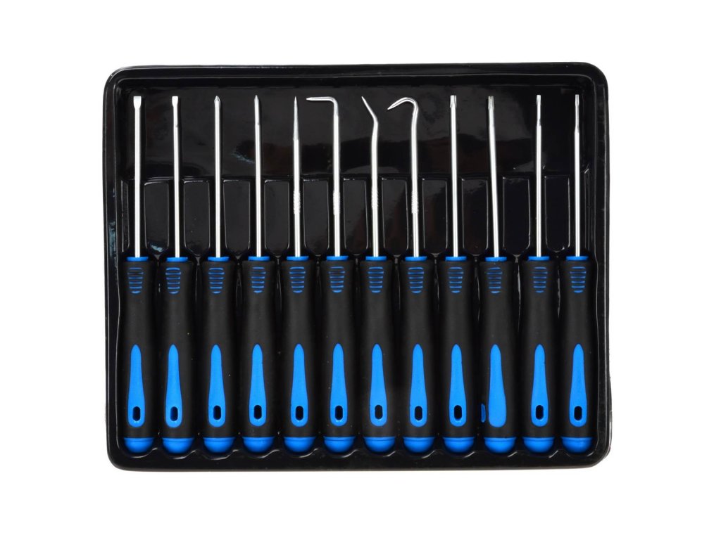 Sada skrutkovačov a montážných hákov 12ks obsahuje ploché skrutkovače, krížové skrutkovače, skrutkovače TORX a ohnuté háky.