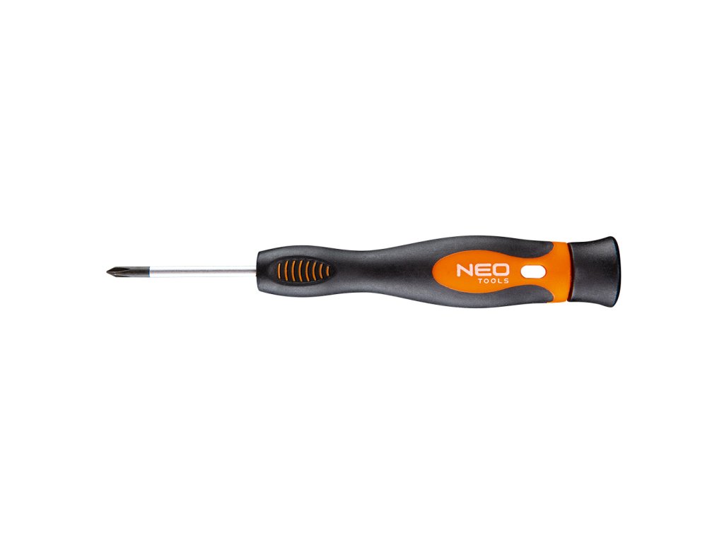 NEO presný krížový skrutkovač PH (ref. 04-117) s rozmermi PH1 x 50 mm. Čepeľ skrutkovača je vyrobená z mimoriadne odolnej ocele S2. Pracovný hrot skrutkovača bol tepelne upravený, vďaka čomu sa dosiahla primeraná tvrdosť a odolnosť voči ohybu. Skrutkovač má magnetický hrot. Otočná objímka v rukoväti umožňuje presné dotiahnutie skrutiek. Rukoväť z dvoch materiálov je odolná voči chemikáliám, olejom a tukom. Kvalitu nástroja potvrdzuje certifikát TÜV a 25-ročná záruka výrobcu. Značka NEO spĺňa očakávania profesionálov.