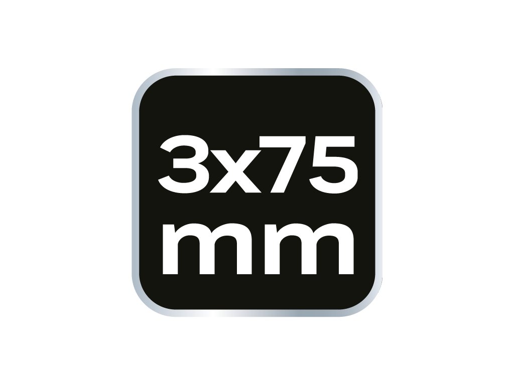 Plochý skrutkovač 3.0 x 75 mm, S2, tvrdosť pracovného bitu 56HRc, magnetický hrot, trojuholníkový tvar rukoväte, tvarovaná opierka palca, rukoväť z TPR plastu odolná voči chemikáliám, minerálnym olejom, tukom, certifikát TÜV