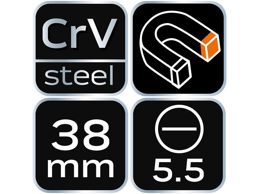 Plochý skrutkovač 5.5 x 38 mm, tvrdený hrot, magnetický hrot, CrV oceľ, dvojitá rukoväť