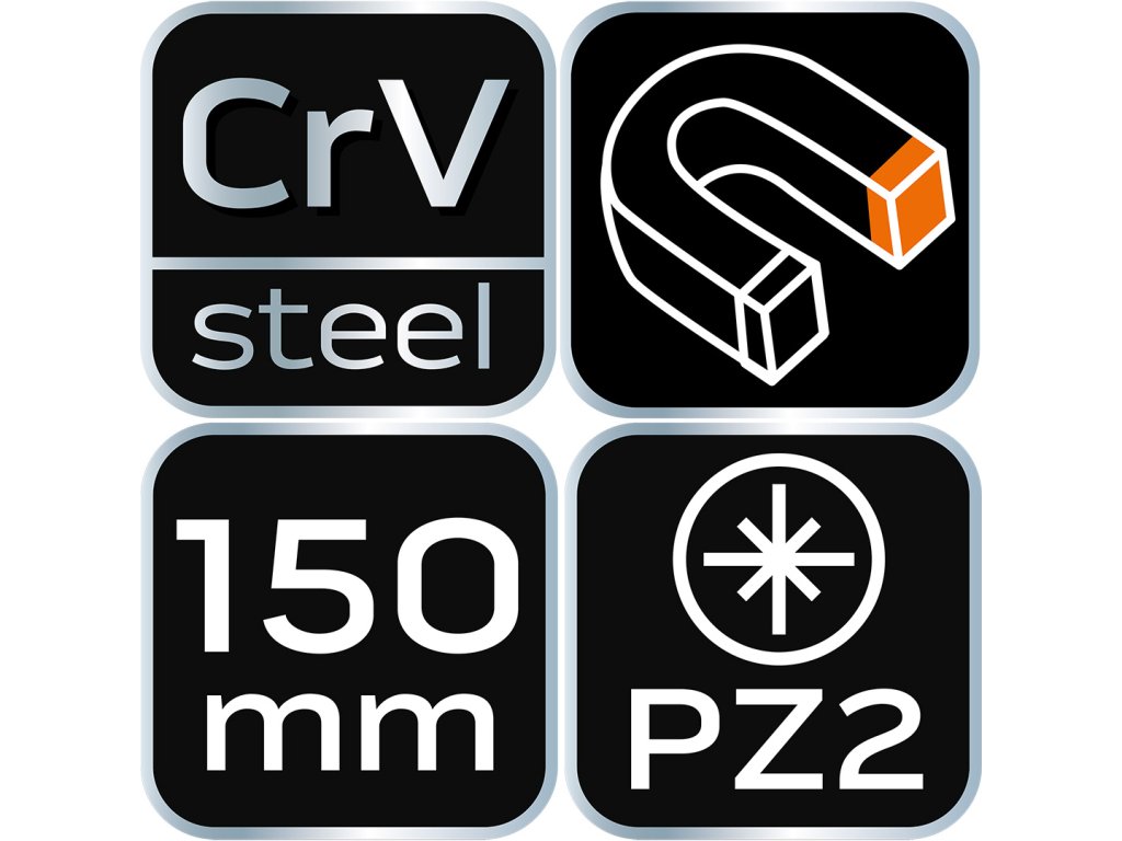Krížový skrutkovač PZ3 x 150 mm, tvrdený hrot, magnetický bit, CrV oceľ, dvojmateriálová rukoväť