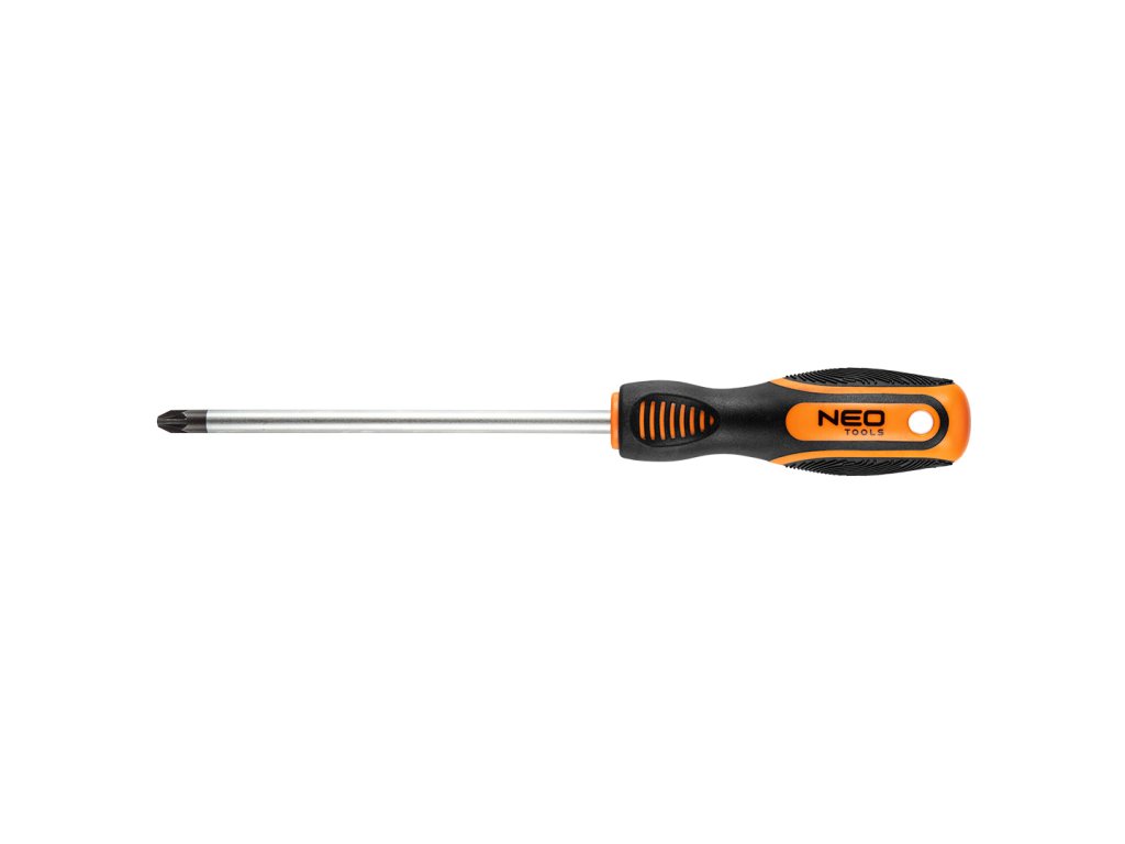 Krížový skrutkovač NEO (ref. 04-185) užitočný pri mechanických prácach a kutilstve. 150 mm dlhá čepeľ je vyrobená z odolnej chróm-vanádiovej ocele, ktorá zaručuje dlhú životnosť nástroja. Magnetický hrot z tvrdenej ocele PZ3 uľahčuje používanie nástroja. Ergonomická plastová rukoväť pokrytá protišmykovým materiálom zaisťuje bezpečnosť a pohodlie pri práci. Značka NEO spĺňa očakávania profesionálov.