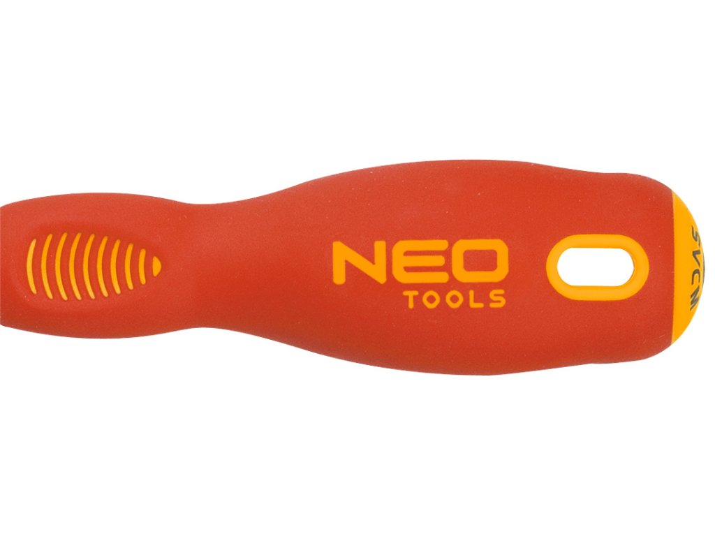 Skrutkovač Torx 1000 V, T25 x 125 mm 04-074 od spoločnosti NEO je izolovaný nástroj používaný inštalatérmi fotovoltaických zariadení, ktorý sa vyznačuje veľkosťou T25. Prispôsobené na prácu s maximálnym napätím 1000 V a vyrobené z odolnej S2 ocele. Skrutkovač má trojuholníkovú rukoväť a tvarovanú opierku na palec. Výrobky značky NEO sa osvedčili počas mnohých sezón používania.