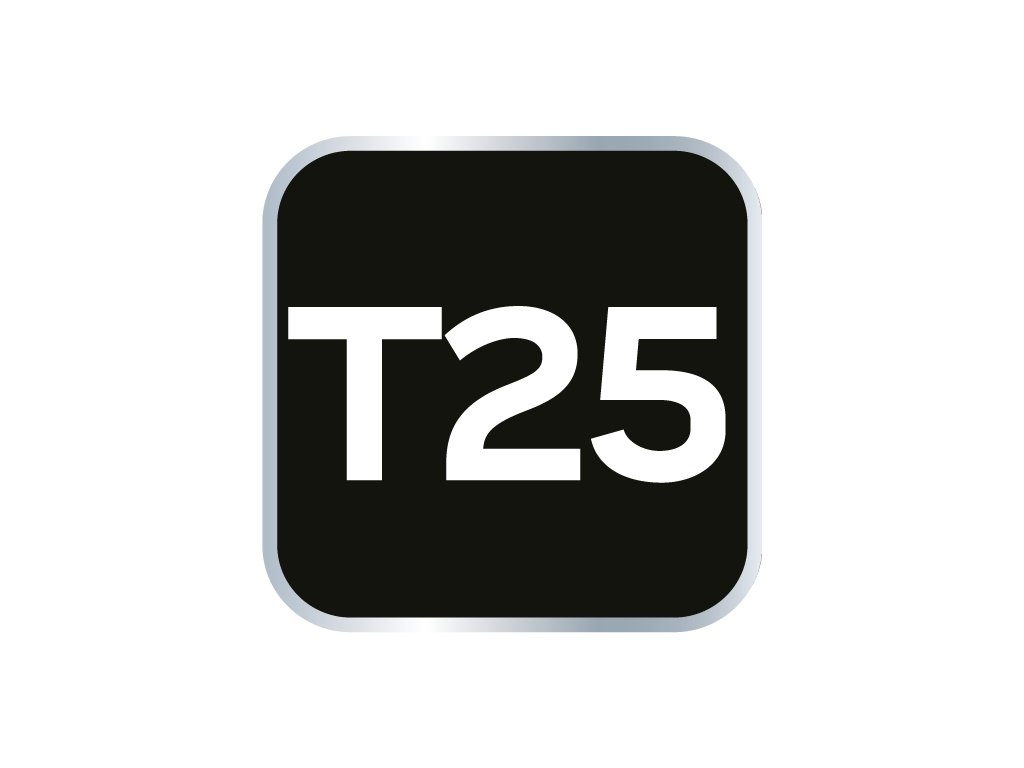 Skrutkovač Torx T25 x 100 mm, S2, tvrdosť pracovného bitu 56 HRc, magnetický bit, trojuholníkový tvar rukoväte, tvarovaná opierka palca, rukoväť potiahnutá plastom TPR odolným voči chemikáliám, minerálnym olejom, tukom, TÜV