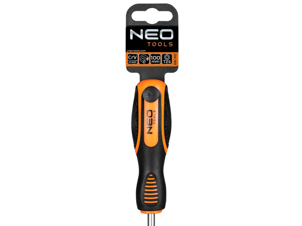 Skrutkovač NEO Torx (ref. 04-189) užitočný pri mechanických prácach a kutilstve. Čepeľ s dĺžkou 100 mm je vyrobená z odolnej chróm-vanádiovej ocele, čo zaručuje dlhú životnosť nástroja. Magnetický hrot z kalenej ocele T25 uľahčuje používanie nástroja. Ergonomická plastová rukoväť pokrytá protišmykovým materiálom zaisťuje bezpečnosť a pohodlie pri práci. Značka NEO spĺňa očakávania profesionálov.