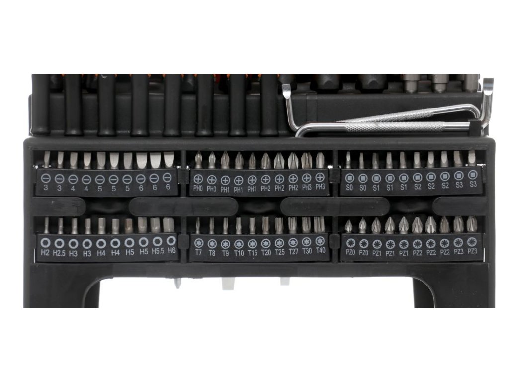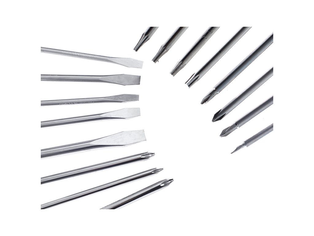- 8 presných skrutkovačov: ploché:2,5x50/1,5x50 krížové PH00x50/PH0x50 typu torx T6x50/T7x50/T8x50/T9x50 mm
