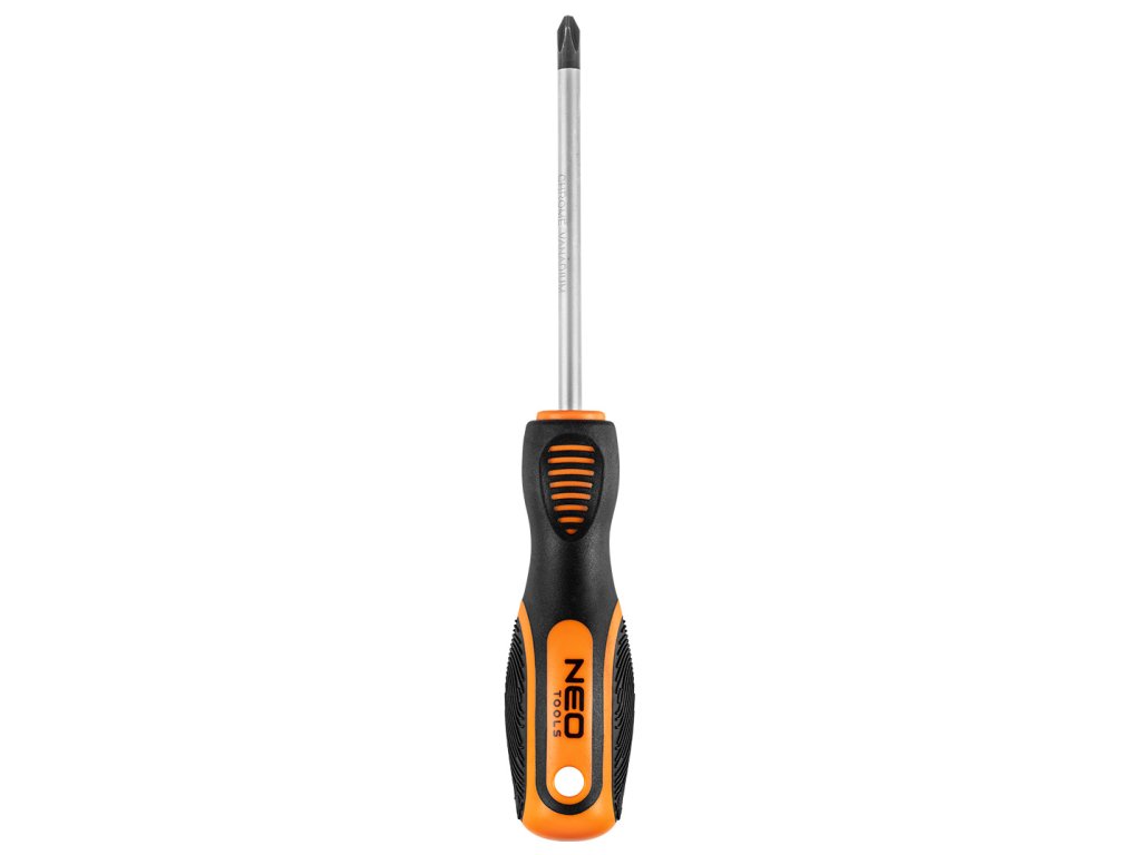 Sada skrutkovačov a skrutkovacích bitov NEO (ref. 04-96) obsahuje 14 vysokokvalitných položiek. Čepeľ každého skrutkovača je vyrobená z odolnej CrV ocele, ktorá zaručuje dlhú životnosť. Skrutkovače majú magnetický hrot. Trojuholníkový tvar rukoväte s tvarovanou opierkou pre palec znižuje namáhanie rúk počas práce a uľahčuje dosiahnutie optimálneho krútiaceho momentu. Rukoväť z dvoch materiálov zabraňuje kĺzaniu v ruke a je odolná voči chemikáliám, olejom a tukom. Značka NEO spĺňa očakávania profesionálov.