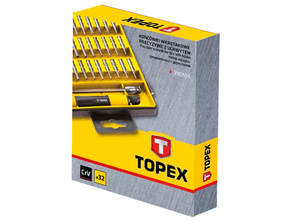 Presné skrutkovacie bity TOPEX (ref. 39D555) sú vyrobené z kvalitnej chróm-vanádiovej ocele, ktorá zaručuje dlhú životnosť nástroja. Vďaka rozšíreniu je možné pracovať na ťažko prístupných miestach. Praktický plastový obal s miestom pre každý kúsok uľahčuje skladovanie. Značka TOPEX je určená pre domácich majstrov.