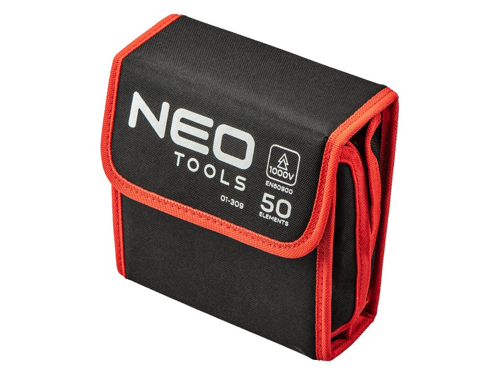 Súprava skrutkovacích nástavcov NEO, pozostávajúca z 50 súčiastok certifikovanách na prácu pod napätím do 1000 V. Vďaka použitiu legovanej ocele S2 je tvrdosť nástavcov 50 HRC, čo výrazne zvyšuje odolnosť a kvalitu ich práce. Súprava obsahuje bohatý balík štandardných a špeciálnych typov nástavcov s dĺžkou 100 mm. Súprava je doplnená o elektrický tester 1000V.