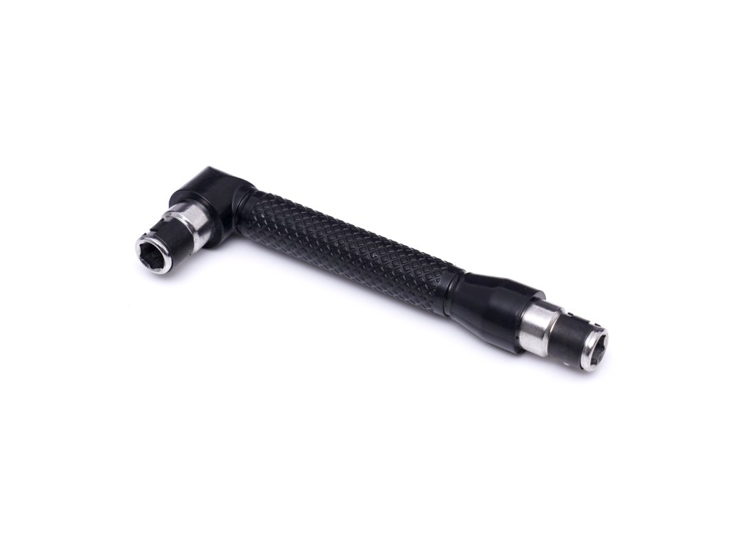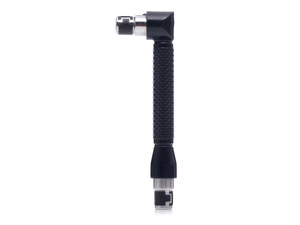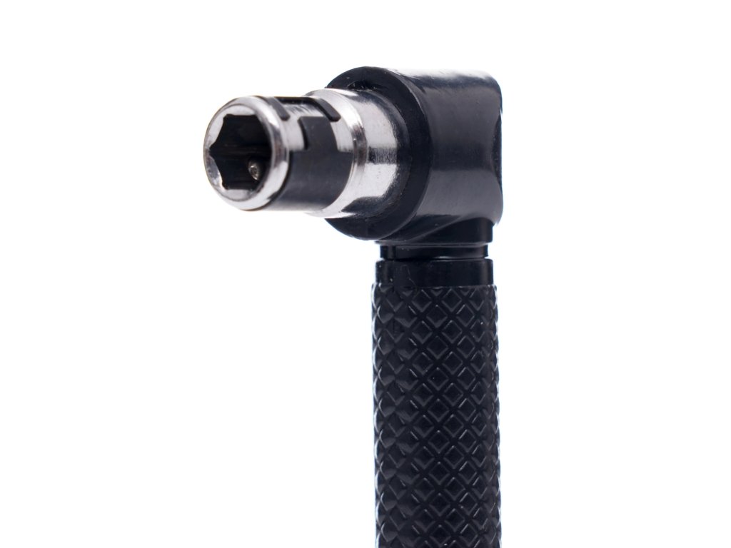 Univerzálny uhlový držiak je ideálny nástroj, vďaka ktorému môžete skrutkovať alebo odskrutkovať rôzne druhy skrutiek na miestach, kde tradičné riešenia zlyhávajú. Skrutkovač má obojstrannú objímku s kratšou uhlovou koncovkou 90° a dlhšou rovnou koncovkou.