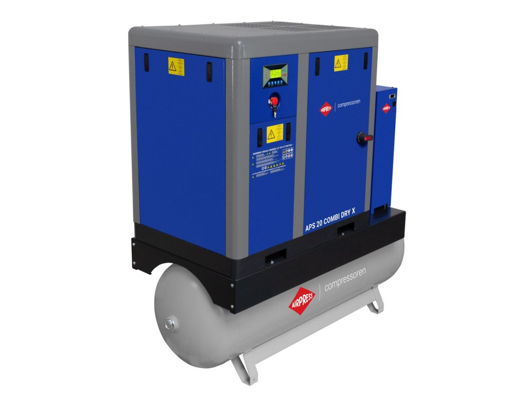 APS 20 Combi Dry X je ideálnym riešením pre firmy, ktoré hľadajú efektívny, energeticky úsporný skrutkový kompresor, ktorý vďaka konštantnému pracovnému režimu, zabudovanému sušiču a veľkej nádrži vzduchu zabezpečuje spoľahlivú a stabilnú dodávku stlačeného vzduchu aj v tých najnáročnejších podmienkach.