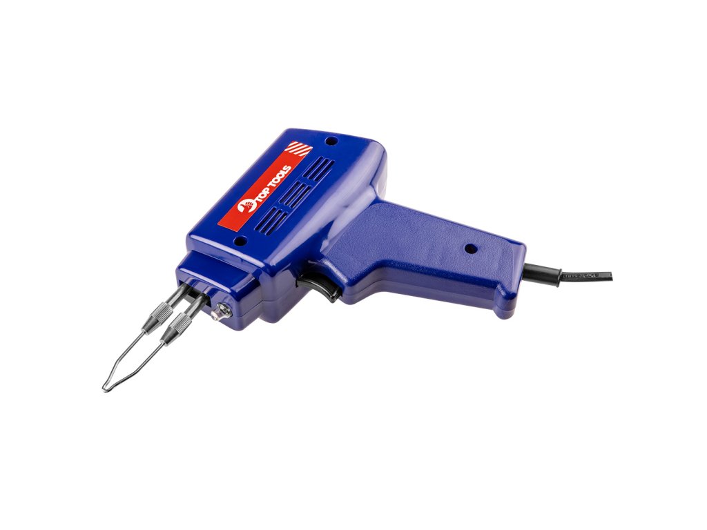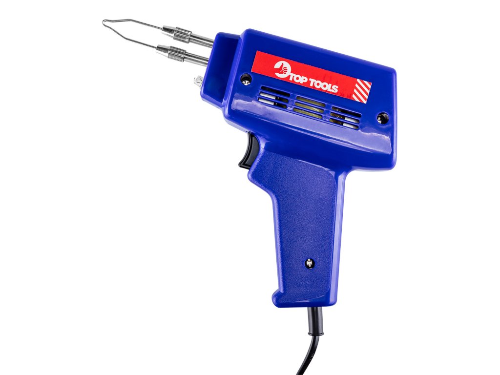 Transformátorová spájkovačka Top Tools (ref. 44E000) s výkonom 100 W. Používa sa na spájanie kovových dielov s použitím nízkotaviteľného spojiva, ako je olovnatý cín na mäkké spájkovanie. Je obzvlášť užitočná na spájanie dielov s väčším prierezom, napr. automobilových elektroinštalácií, nízkonapäťových domácich elektroinštalácií a iných prác vyžadujúcich zvýšenú teplotu ohrevu. Má zabudovanú žiarovku osvetľujúcu miesto spájkovania, čo výrazne zvyšuje komfort práce. Súlad s európskymi bezpečnostnými normami zaručuje certifikát CE.