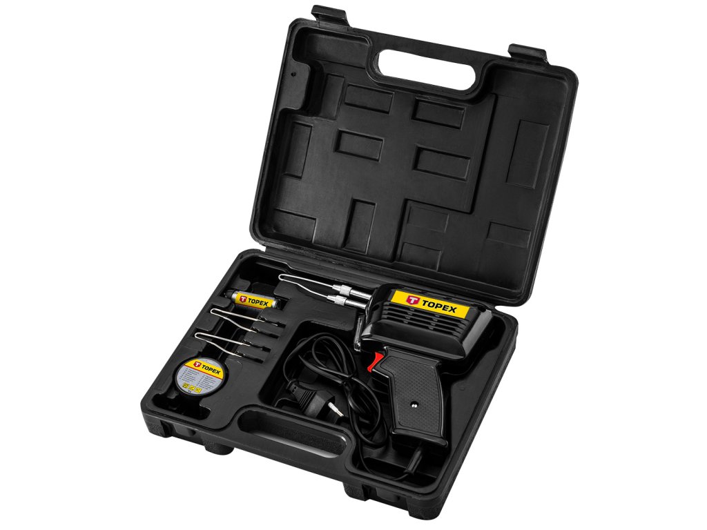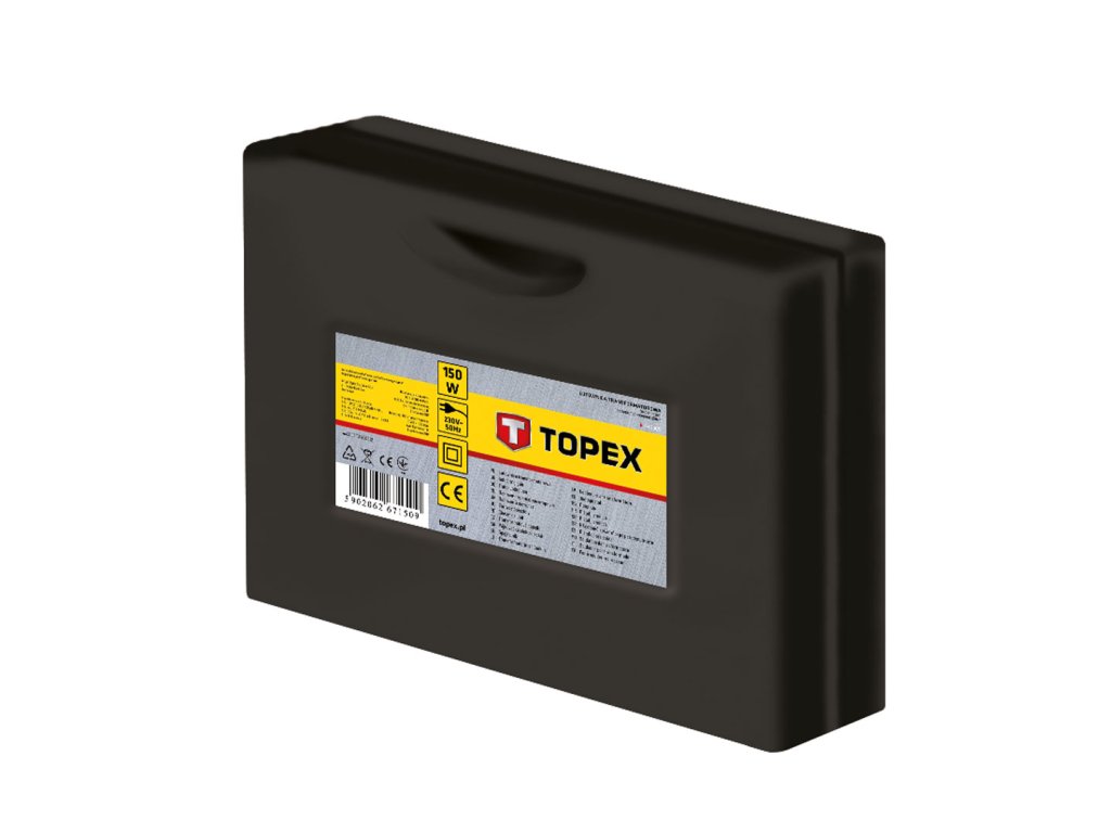TOPEX transformátorová spájkovačka (ref. 44E005) 150W. Používa sa na spájanie kovových dielov so spojivom s nízkym bodom topenia, ako je olovnatý cín na mäkké spájkovanie. Je obzvlášť užitočná na spájanie dielov s väčším prierezom, napr. automobilových elektroinštalácií, nízkonapäťových domácich elektroinštalácií a iných prác vyžadujúcich zvýšenú teplotu ohrevu. Má zabudovanú žiarovku osvetľujúcu miesto spájkovania, čo výrazne zvyšuje komfort práce. Balené v praktickom kufríku, spolu s pájacou pastou a cínovou spájkou. Certifikát CE zaručuje súlad s európskymi bezpečnostnými normami. Značka TOPEX je určená pre domácich majstrov.