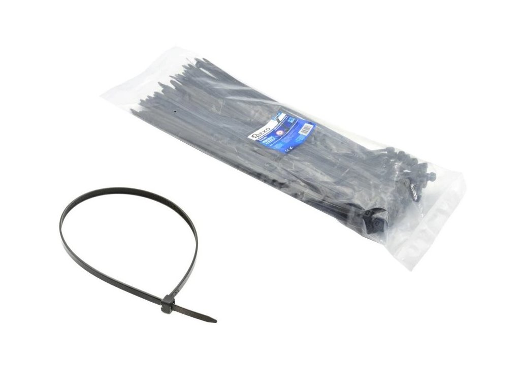 Plastové sťahovacie pásky z polyamidu sú dlhé 250mm a široké 3,6mm v čiernej farbe.