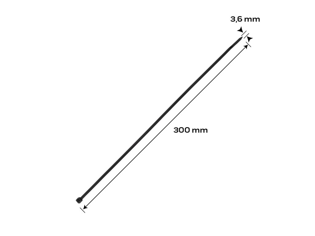 Svorky model EXTREME, rozmer 3,6 × 300 mm, farba čierna, 20 kusov, materiál nylon PA66, nosnosť 30 kg, odolné voči UV žiareniu