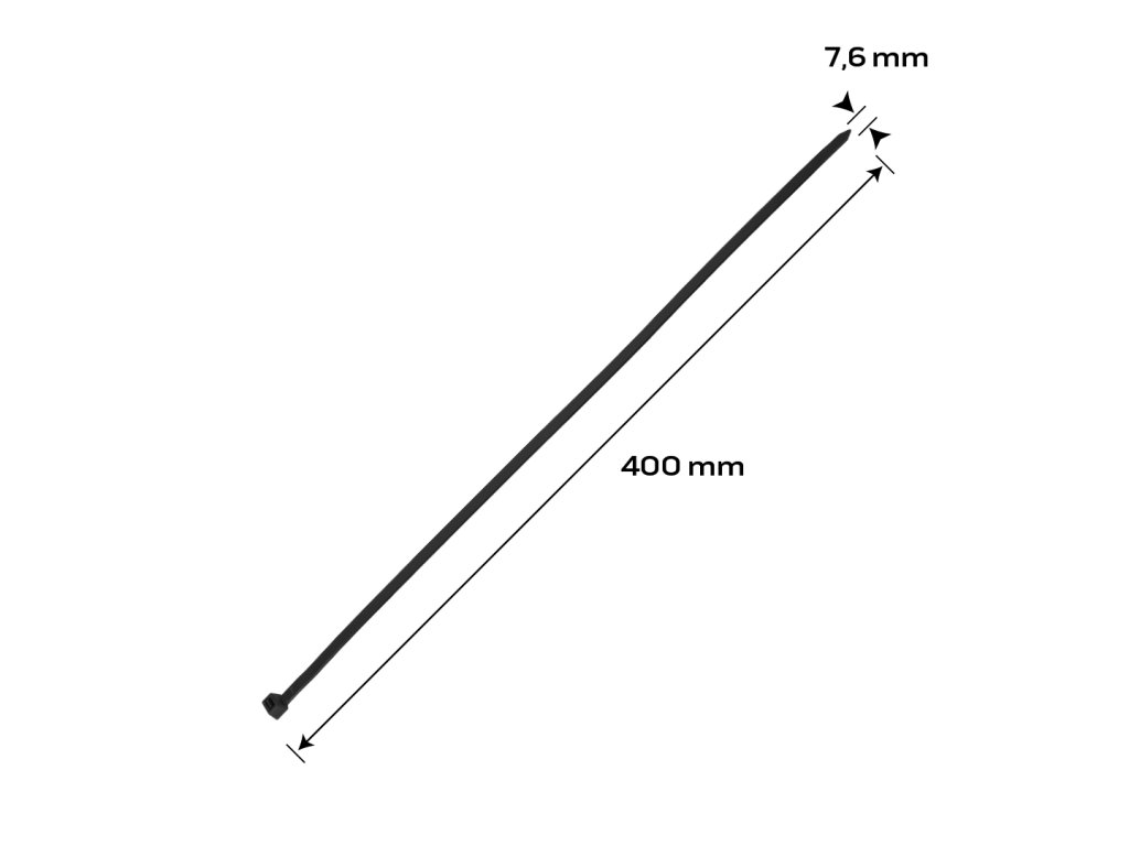 Svorky model EXTREME, rozmer 7,6 × 400 mm, čierna farba, 50 kusov, materiál nylon PA66, nosnosť 65 kg, odolné voči UV žiareniu