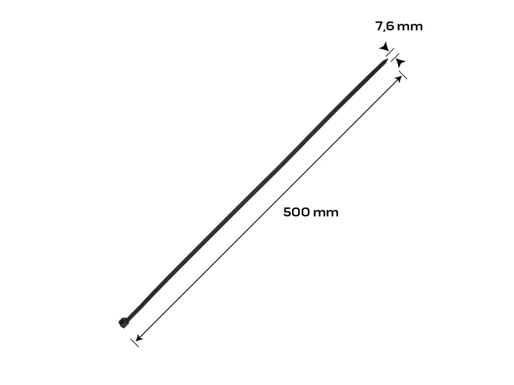 Svorky model EXTREME, rozmer 7,6 × 500 mm, farba čierna, 50 kusov, materiál nylon PA66, nosnosť 65 kg, odolné voči UV žiareniu