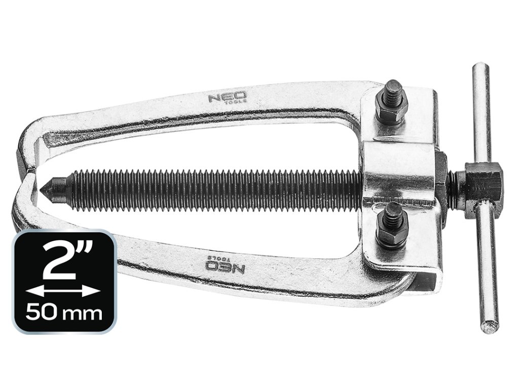 NEO 2" mini dvojramenný sťahovák (ref. 11-872) vyrobený z vysokokvalitnej chróm-vanádiovej ocele zaručujúcej dlhoročnú životnosť. Veľkosť 2". Určené na ťahanie malých ložísk. Na jednej strane má ramená s háčikmi a kliešte na krútenie. Značka NEO spĺňa očakávania profesionálov.