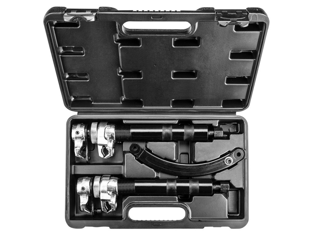 Sťahovák pružín NEO je užitočný v každej dielni a autoservise. Uľahčuje demontáž pružín. Súprava obsahuje dve časti. Prvky sú vyrobené z vysokokvalitnej ocele. Pracovný rozsah od 23 do 280 mm. Celé zabalené v kufríku.
