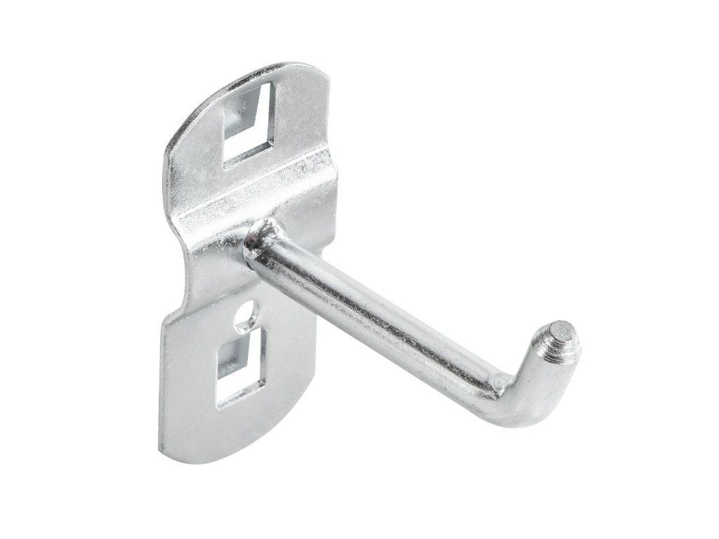 Vyskladajte si stenu podľa svojich predstáv. Háčiky vyrobené z ocele perfektne sadnú k perforovanej kovovej stene. Hák uľahčuje zavesenie náradia pri práci, pomáha udržiavať poriadok a poskytuje rýchly prístup k náradiu. Použitím rôznych prvkov z nášho výberu si môžete vytvoríte ideálne miesto na uloženie náradia.