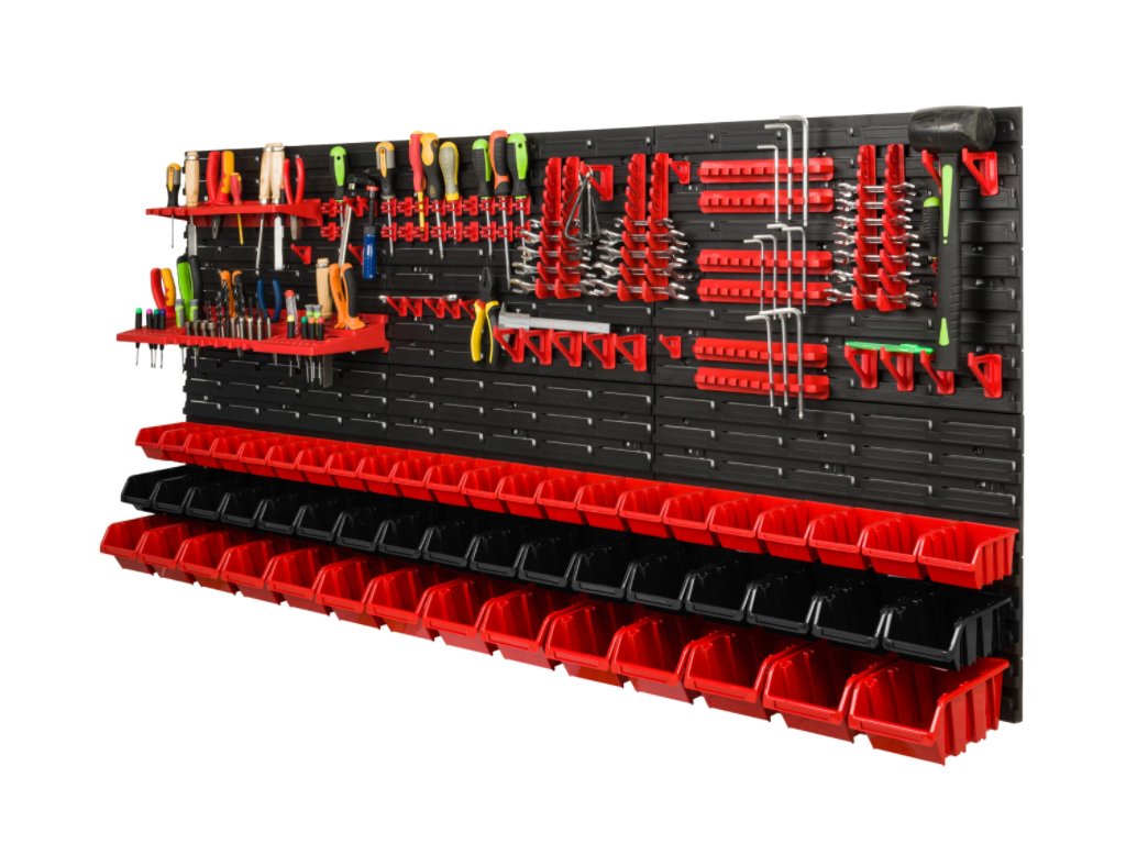 Závesná stena na náradie je skvelý spôsob, ako ušetriť priestor a mať prehľad v náradí a súčiastkach. Praktická sada na uloženie potrebného vybavenia pre vašu dielňu, sklad, garáž alebo technickú miestnosť.