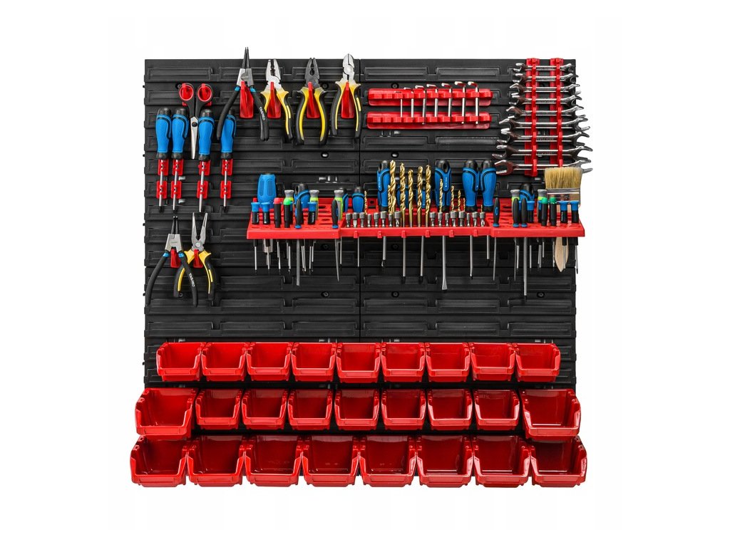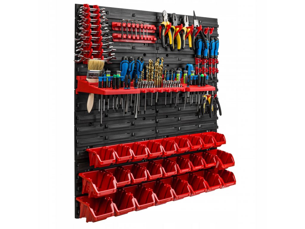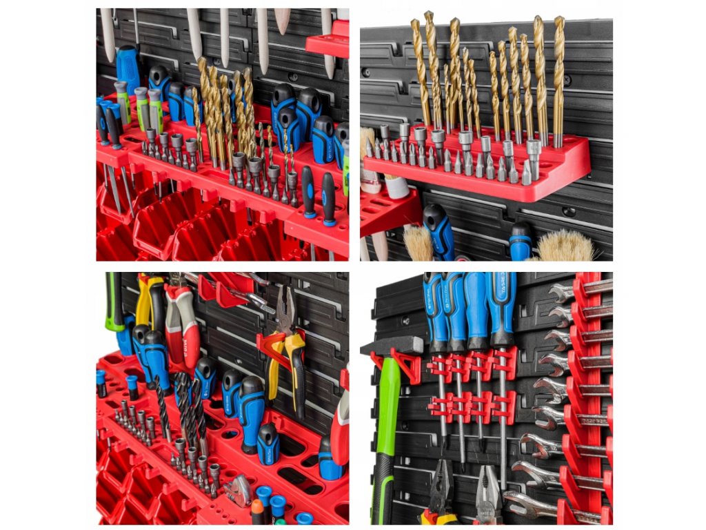 Závesná stena na náradie je skvelý spôsob, ako ušetriť priestor a mať prehľad v náradí a súčiastkach. Praktická sada na uloženie potrebného vybavenia pre vašu dielňu, sklad, garáž alebo technickú miestnosť. Steny na náradie sú praktické, odolné a vďaka nim vždy budete vedieť, kde je čo uložené a vyznačujú sa tiež jednoduchou montážou.