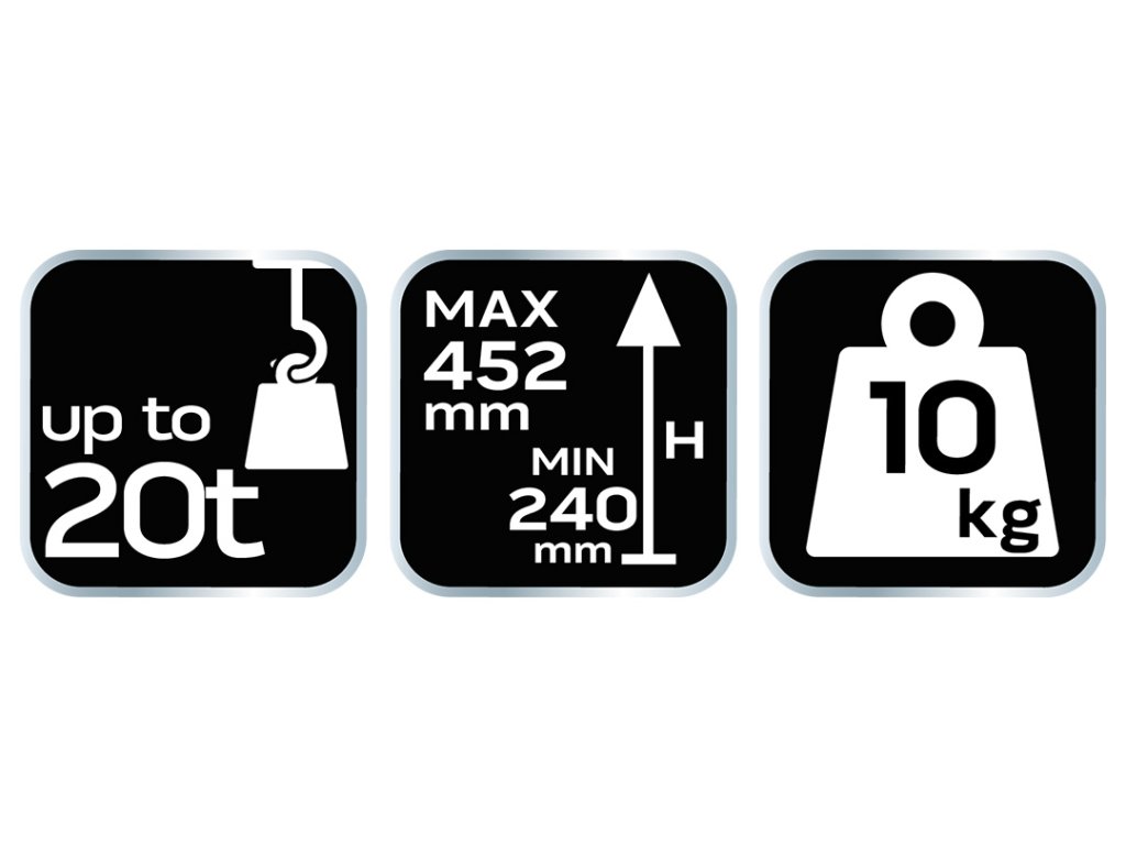 Stojanový zdvihák 20 t, 240-450 mm, hmotnosť 10,0 kg, CE