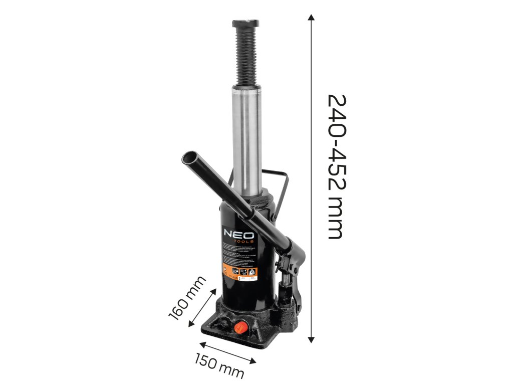 NEO 20 t tyčový zdvihák (ref. 10-456). Robustný stĺpový zdvihák s maximálnou zdvíhacou hmotnosťou 20 t, vyrobený z ocele, nájde uplatnenie v každej dielni a je skvelým doplnkom k vybaveniu garáže. Súlad s európskymi bezpečnostnými normami zaručuje certifikát CE. Značka NEO je určená pre profesionálov.