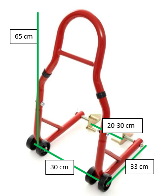 Stojan pre motocykle je najväčším pomocníkom pri ich servisovaní alebo len ako stojan pri dlhšom parkovaní motocykla aby nedošlo k opotrebeniu továrenského stojana a otlačenie pneumatík. Je vyrobený z kvalitnej liatiny a nastriekaný odolnou práškovou farbou. K dispozícii má štyri kolieska z tvrdého plastu pre jednoduchšie dvíhanie. Umožňuje umiestniť motocykel (napr. pri opravách) do pohodlnej polohy bez zaťaženia pneumatík. Kompatibilné s väčšinou modelov značiek. Užitočné v každej garáži a dielni. Nosnosť 300kg.