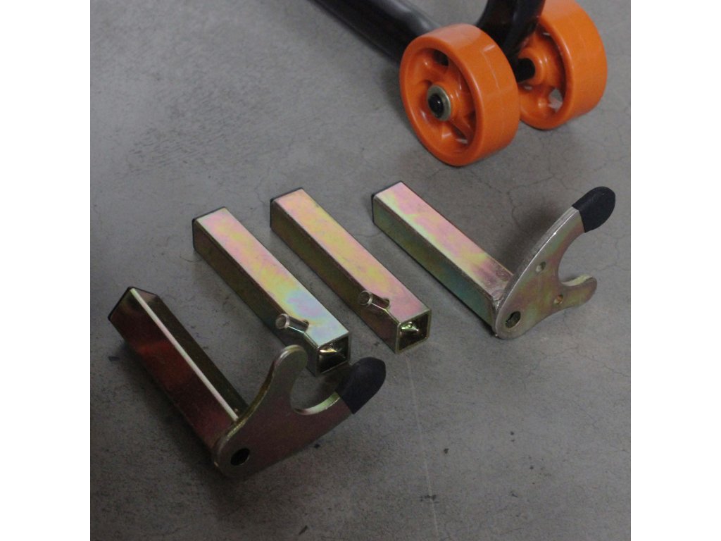 Stojan na motocykel s viacerými adaptérmi.