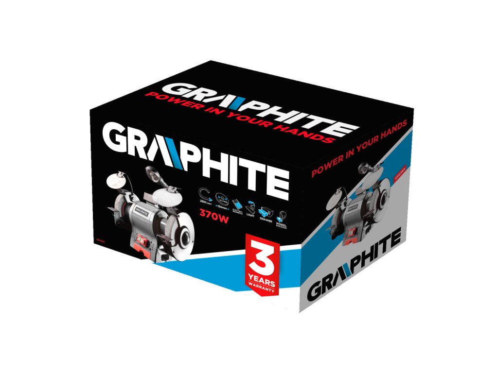 Špičková stolová brúska od značky GRAPHITE s výkonom 370 W na obrábanie tvrdých materiálov. Maximálny priemer brúsnych kotúčov je 150 mm. Brúska je vybavená indukčným motorom s medeným vinutím. Brúska je vyrobená z hliníkovej zliatiny a je odolná voči poškodeniu a vysokej teplote. Zariadenie je vybavené spínačom s magnetickou podporou a zariadením na vyrovnávanie pracovnej plochy brúsneho kotúča.