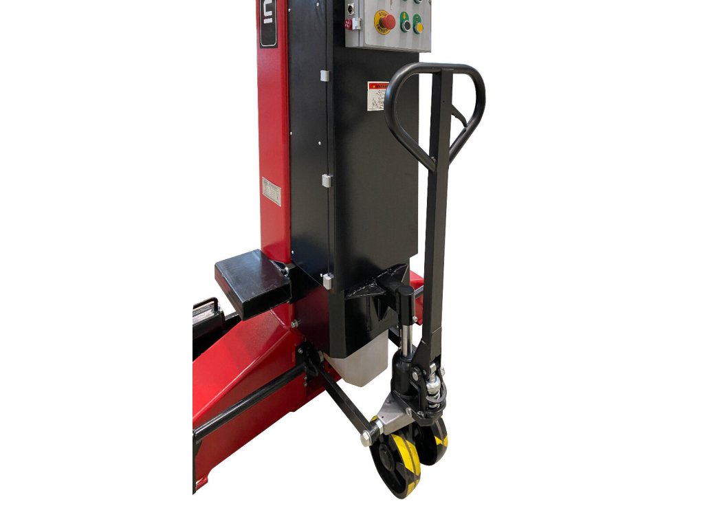 Každý stĺpik je vybavený výkonným elektromotorom a spoľahlivým skrutkovým zdvíhacím mechanizmom, ktorý zabezpečuje plynulé a bezpečné zdvíhanie. Elektronický riadiaci systém umožňuje ovládanie všetkých ôsmich stĺpikov naraz, prípadne po skupinách alebo individuálne – podľa potrieb práce.