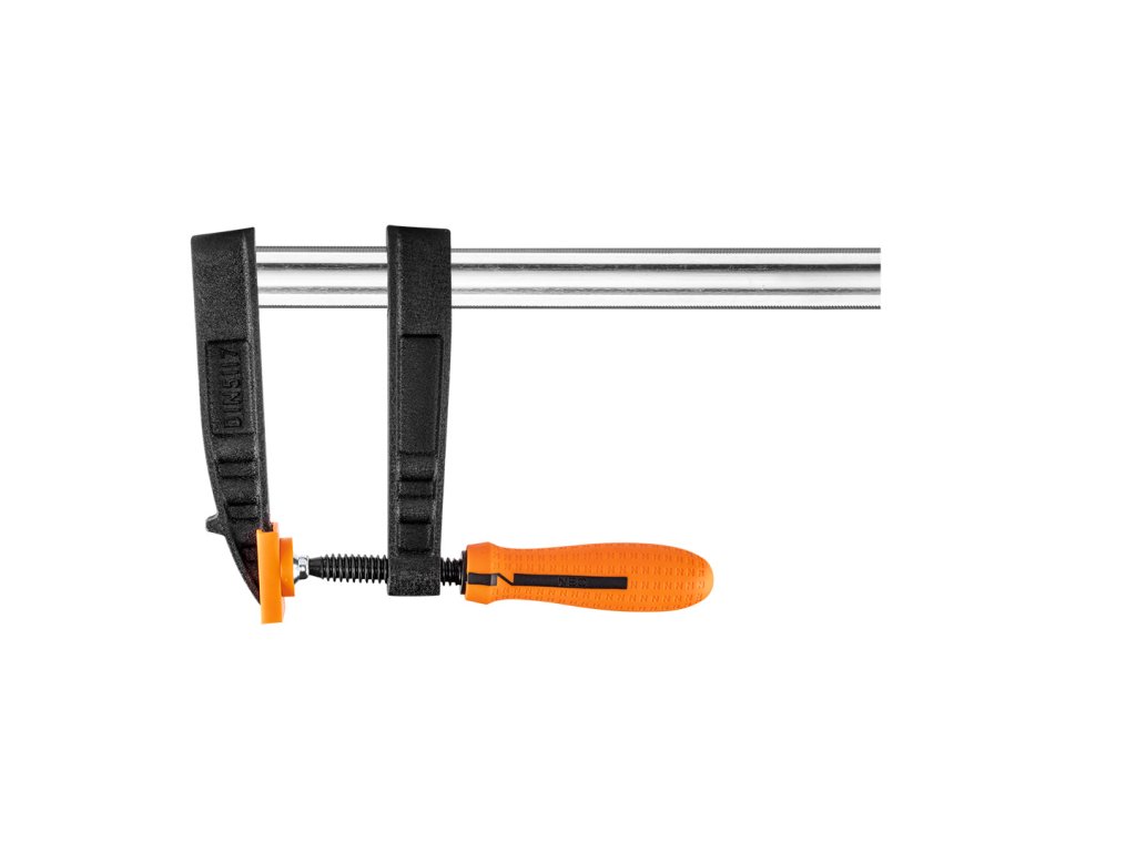Stolárska svorka NEO (ref. 45-453) s dĺžkou 300 mm a upínacou silou do 450-500 kg. Uľahčuje upevnenie obrobkov na stôl a ich správne zostavenie do celku. Má oceľové vedenie so zvýšenou tuhosťou, vybavené drážkami, ktoré uľahčujú udržanie ramena v správnej polohe. Ďalšou výhodou sú plastové podložky chrániace obrobok pred poškriabaním. Ergonomická rukoväť je potiahnutá mäkkým materiálom pre bezpečné uchopenie počas uťahovania. Certifikát TÜV Rheinland a výroba výrobku podľa normy DIN 5117 sú zárukou jeho spoľahlivosti. Značka NEO spĺňa očakávania profesionálov.