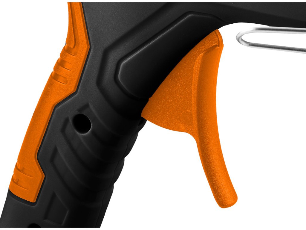 Lepiaca pištoľ NEO (ref. 17-096) na lepidlo s priemerom 11 mm, výkon 60 W. Pištoľ vďaka vysokému výkonu a pracovnej teplote rozpúšťa lepidlo rýchlejšie. 2-3-krát rýchlejšie roztápanie lepidla ako pri práci so štandardnou pištoľou. Ergonomická dlhá spúšť navrhnutá na zníženie námahy pri práci a zvýšenie efektivity spotreby lepidla. Tepelne odolné puzdro. Kovový hrot bez kvapkania na presné nanášanie lepidla. Ideálne na profesionálne použitie, ako je výroba nábytku, upevňovanie kobercov. Vysoký výkon lepidla 22 g/min. Certifikát CE zaručuje súlad s európskymi bezpečnostnými normami. Certifikát TÜV Rheinland zaručuje vysokú kvalitu a spoľahlivosť výrobku. Značka NEO spĺňa očakávania profesionálov.