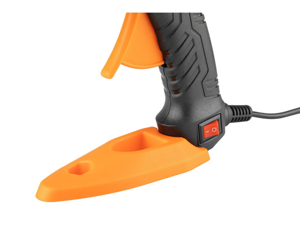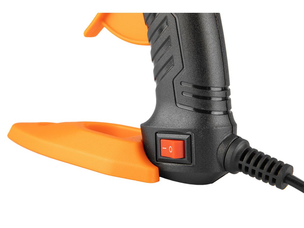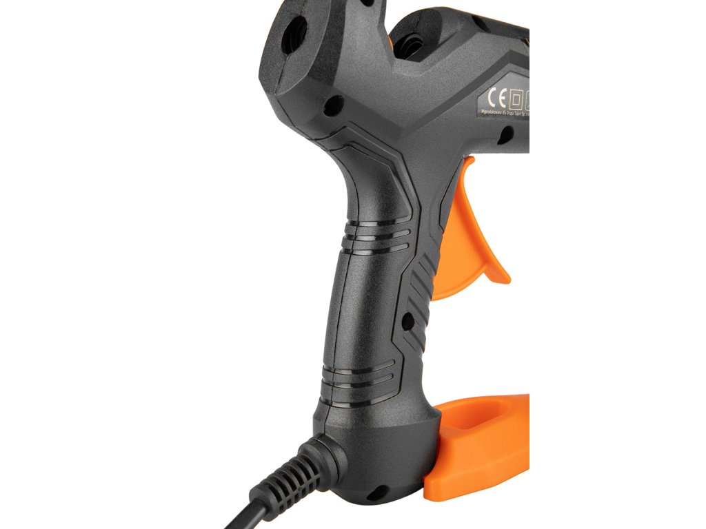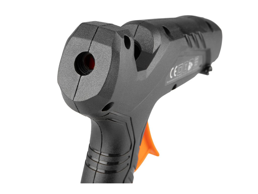 Lepiaca pištoľ NEO (ref. 17-095) na lepidlo s priemerom 8 mm, s výkonom 30 W. Pištoľ vďaka vysokému výkonu a pracovnej teplote rozpúšťa lepidlo rýchlejšie. 2-3-krát rýchlejšie roztápanie lepidla ako pri práci so štandardnou pištoľou. Ergonomická dlhá spúšť navrhnutá na zníženie námahy pri práci a zvýšenie efektivity spotreby lepidla. Tepelne odolné puzdro. Kovový hrot bez kvapkania na presné nanášanie lepidla. Ideálne na profesionálne použitie, ako je výroba nábytku, upevňovanie kobercov. Vysoký výkon lepidla 22 g/min. Certifikát CE zaručuje súlad s európskymi bezpečnostnými normami. Certifikát TÜV Rheinland zaručuje vysokú kvalitu a spoľahlivosť výrobku. Značka NEO spĺňa očakávania profesionálov.