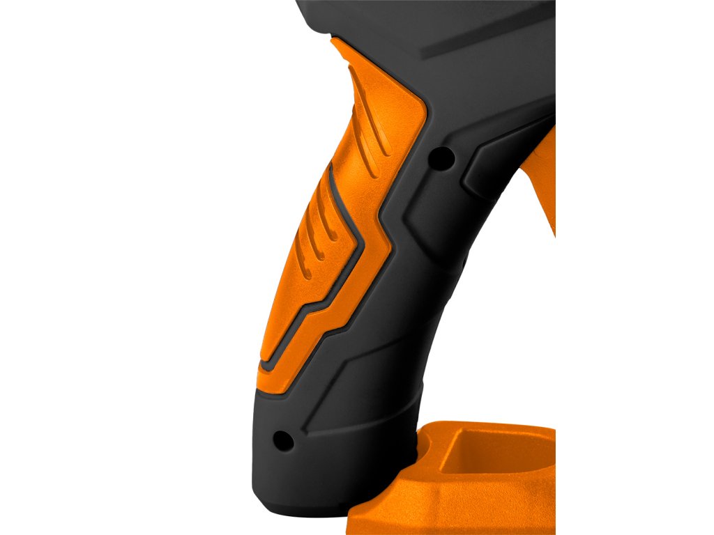 Lepiaca pištoľ 8 mm, 4 V, napájanie USB 17-084 od spoločnosti NEO je bezdrôtová lepiaca pištoľ, napájaná káblom USB. Je vhodný pre lepiace kazety s priemerom 8 mm. Je vybavený lítiovou batériou s kapacitou 2600 mAh. Na úplné nabitie potrebuje 3 h a má čas prevádzky 100 minút. Jeho výkon je 360-600 g/h. Tento typ pištole ponúka o 2/3 rýchlejšie rozpúšťanie lepidla ako konkurenčné značky. Má žiaruvzdorný kryt a nekvapkajúci kovový hrot na presné nanášanie lepidla. Vhodné na profesionálne aj domáce použitie.