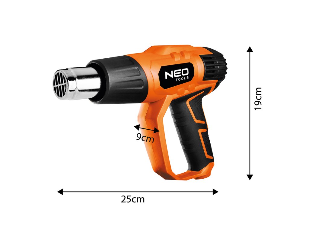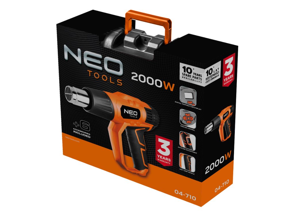 Tanner 2000 W, I: 50 °C, II: 70-600 °C, kufor, displej 04-710 od spoločnosti NEO je vysoko výkonný nástroj s výkonom 2000 W. Pracuje v teplotných rozsahoch I - 50 °C a II - 70-600 °C. Ponúka prietok vzduchu 300 - 500 l/min. Prístroj má nízku hmotnosť 0,77 kg a praktický dizajn na vertikálnu prácu. Priložený pohodlný 6m kábel umožňuje voľné manévrovanie s opalovačom. Tento nástroj je určený predovšetkým na odstraňovanie náterov, ohýbanie, zváranie termoplastov, rozmrazovanie, sušenie a dyhovanie nábytkových dielov. Opalovací stroj určený na profesionálne a priemyselné použitie v interiéri aj exteriéri. Priložené príslušenstvo - 4 trysky, škrabka s rukoväťou a prepravné puzdro - rozširuje možnosti tohto zariadenia.