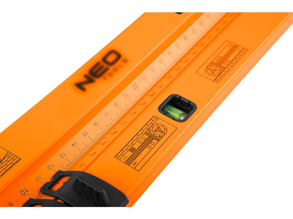 Nastaviteľný úkosomer s vodováhou 500 mm, 2 fľaštičky, ceruzka 72-225 od spoločnosti NEO je viacúčelový nástroj, ktorý v sebe spája niekoľko meracích nástrojov. Je vybavený šikmým meradlom so širokým meracím rozsahom 0° - 270°, vodováhou s dvoma 500 mm dlhými libelami a 50 cm dlhým lineárnym meradlom. Nástroj umožňuje pripojiť tesársku ceruzku (je súčasťou dodávky) a využívať funkciu kompasu. Zabudovaná upínacia skrutka umožňuje jednoduché a efektívne meranie uhla. Uhlomer od značky NEO sa odporúča do každej dielne pre domácich majstrov.
