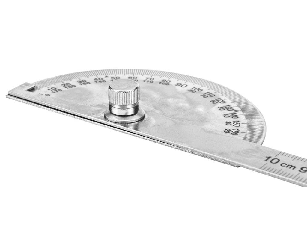 Uhlomer s pravítkom 100 mm, nerezová oceľ 72-320 od spoločnosti NEO je nástroj na meranie uhlov v rozsahu 0-180°. Pravítko umožňuje meranie od 0 do 100 mm. Vyrobené z nehrdzavejúcej ocele. Umožňuje vykonávať merania pri mechanických prácach a pri domácich prácach. Náradie značky NEO je určené pre profesionálov aj pre domáce použitie.