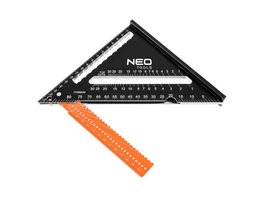 Skosenie NEO s pravítkom (ref. 72-105) s výškou 185 mm je vybavené aj sklopným pravítkom, ktoré zväčšuje rozsah merania na 317 mm. Úkos je vyrobený z hliníka, značka z nehrdzavejúcej ocele.