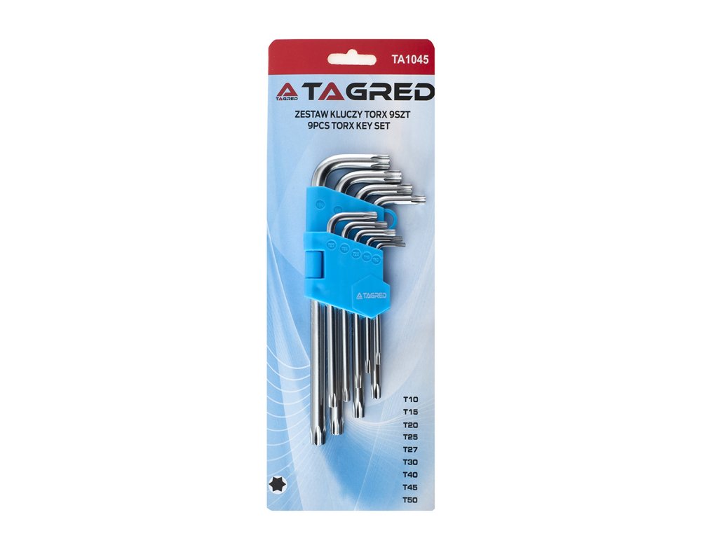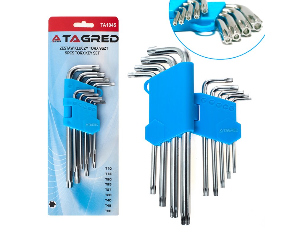 Imbusové kľúče TORX typ L s otvorom T10 až T50, 9 ks TA1045
