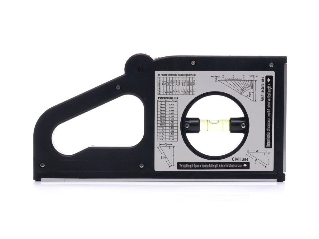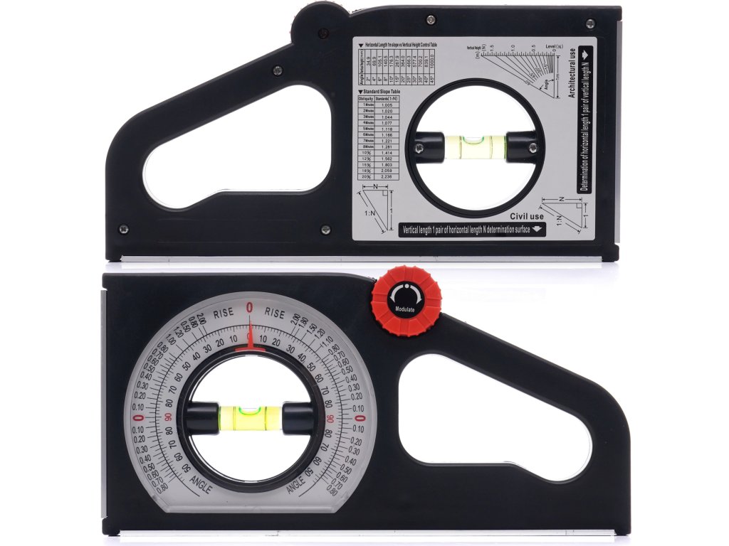 Profesionálny uhlomer s vodováhou na meranie uhlov a sklonu (poklesu / nárastu). Nástroj je ideálny na kontrolu, montáž, inštaláciu atď.